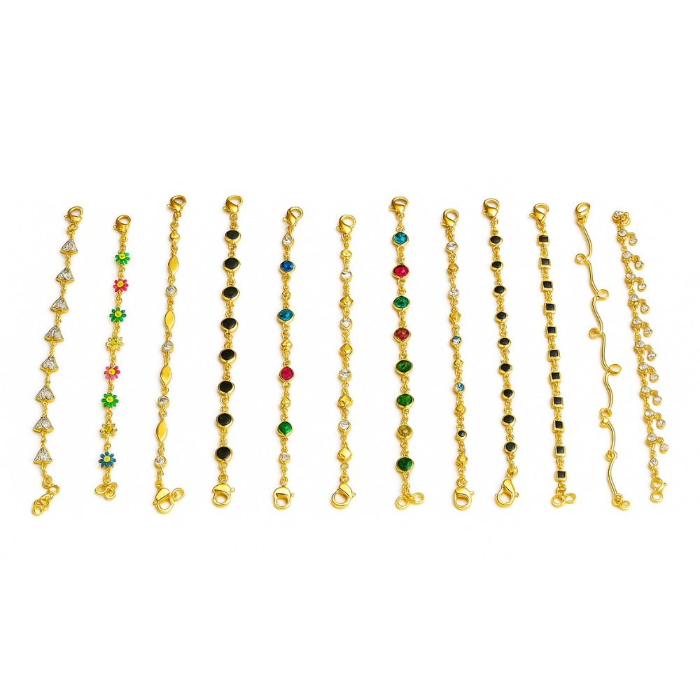 Add a touch of elegance and charm to your look with our stunning bracelet collection. Crafted with premium gold-plated links and vibrant stones, these bracelets are designed to complement every outfit – from daily wear to festive occasions.