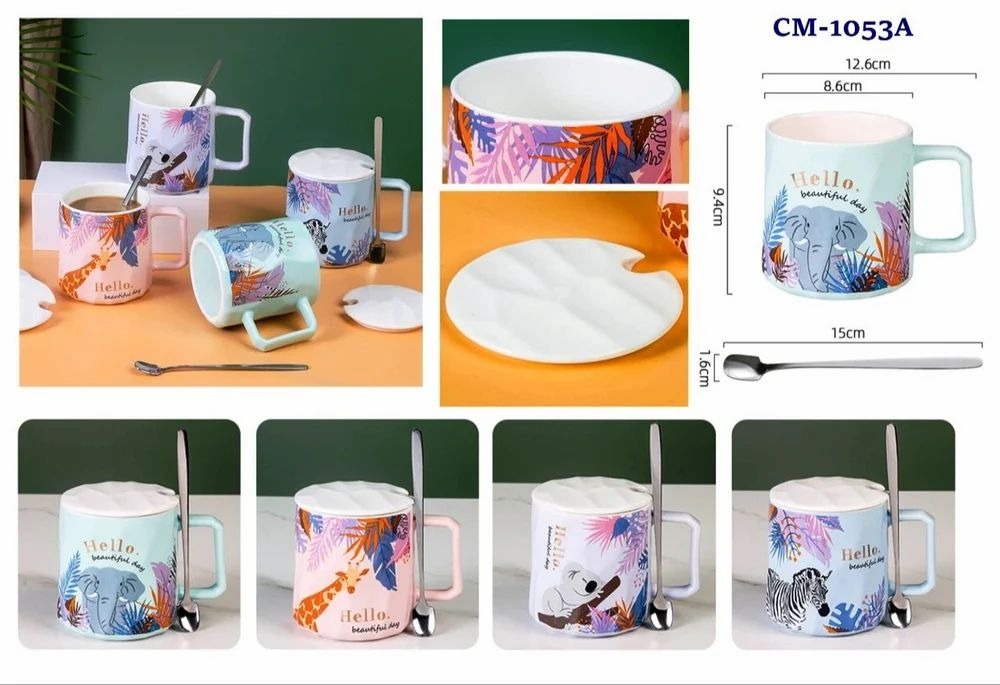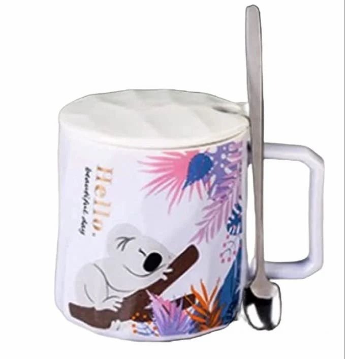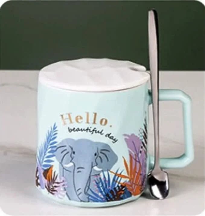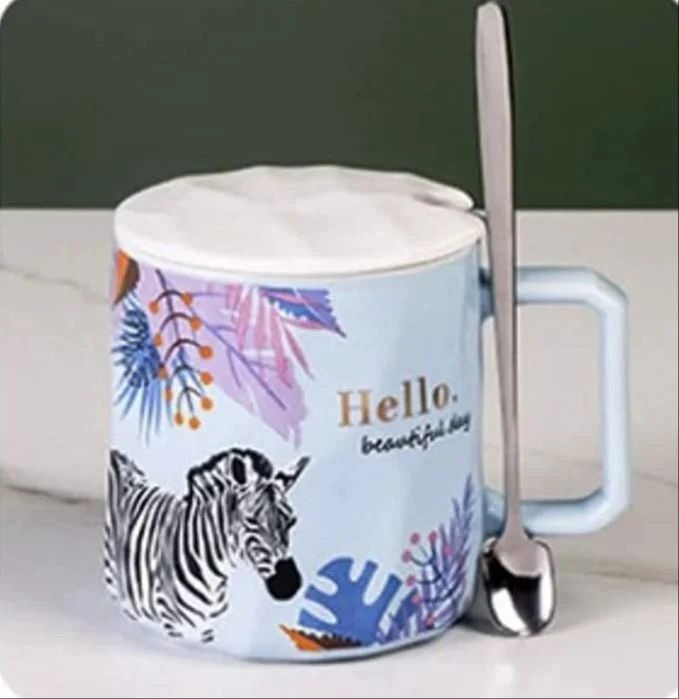 Ceramic Mug Animal Print Mug with Lid and Spoon