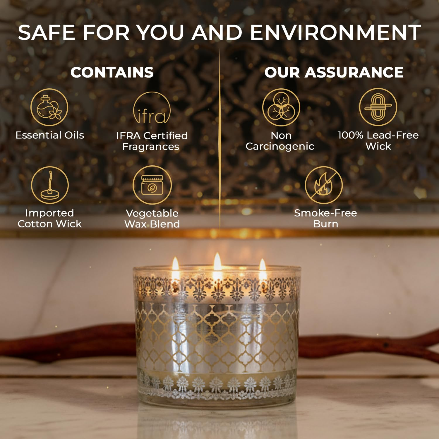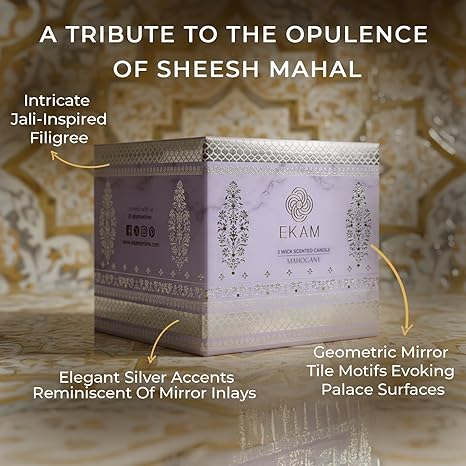 EKAM 2025–26 Festive Fragrance Gift| Scented 3 Wick Candle| Mahogany | Inspired by Sheesh Mahal | 28-Hour Burn